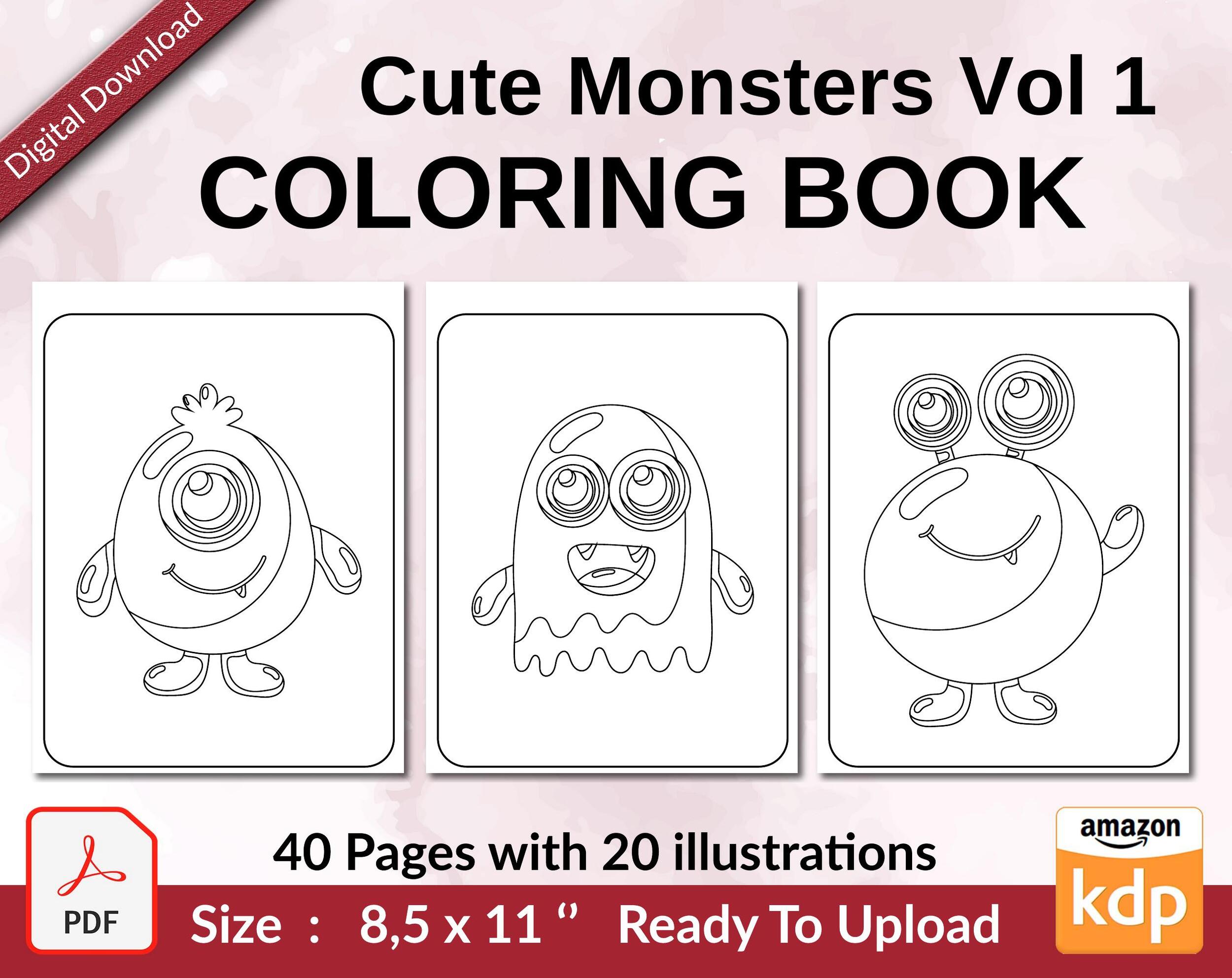 Monster Coloring Book For Kids – Printable Coloring Pages, 8.5×11 PDF FILE – KDP Interior