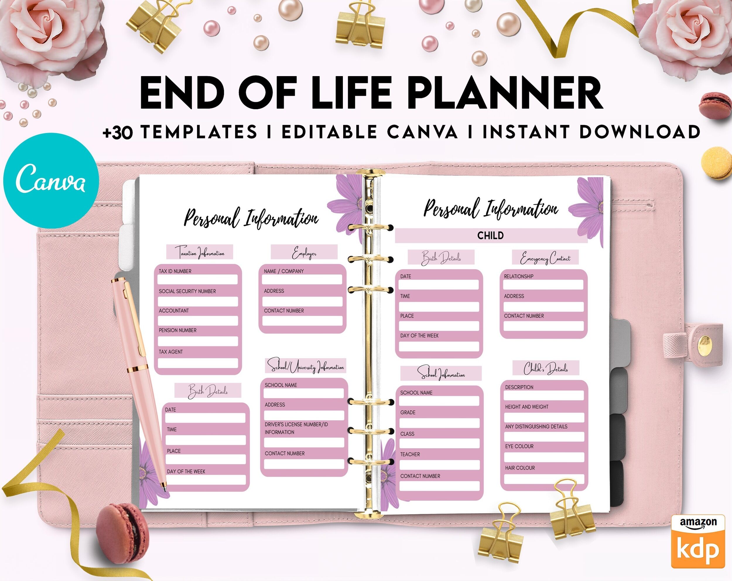 End Of Life Planner Final Wishes Planner What If Emergency Binder Editable Templates Legacy Planner Funeral Planner Estate Planning Organizer, Canva Editable Templates, Kdp interior