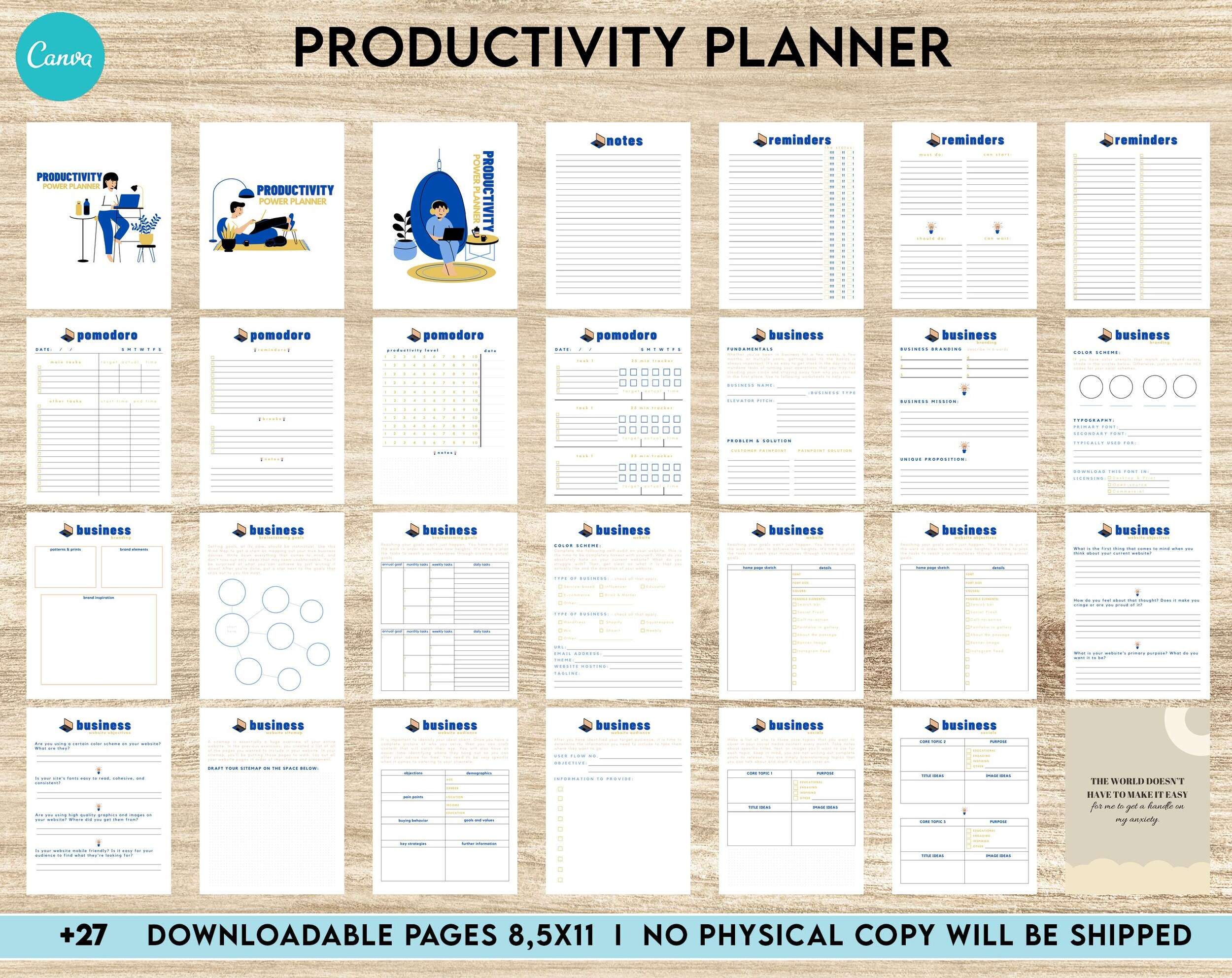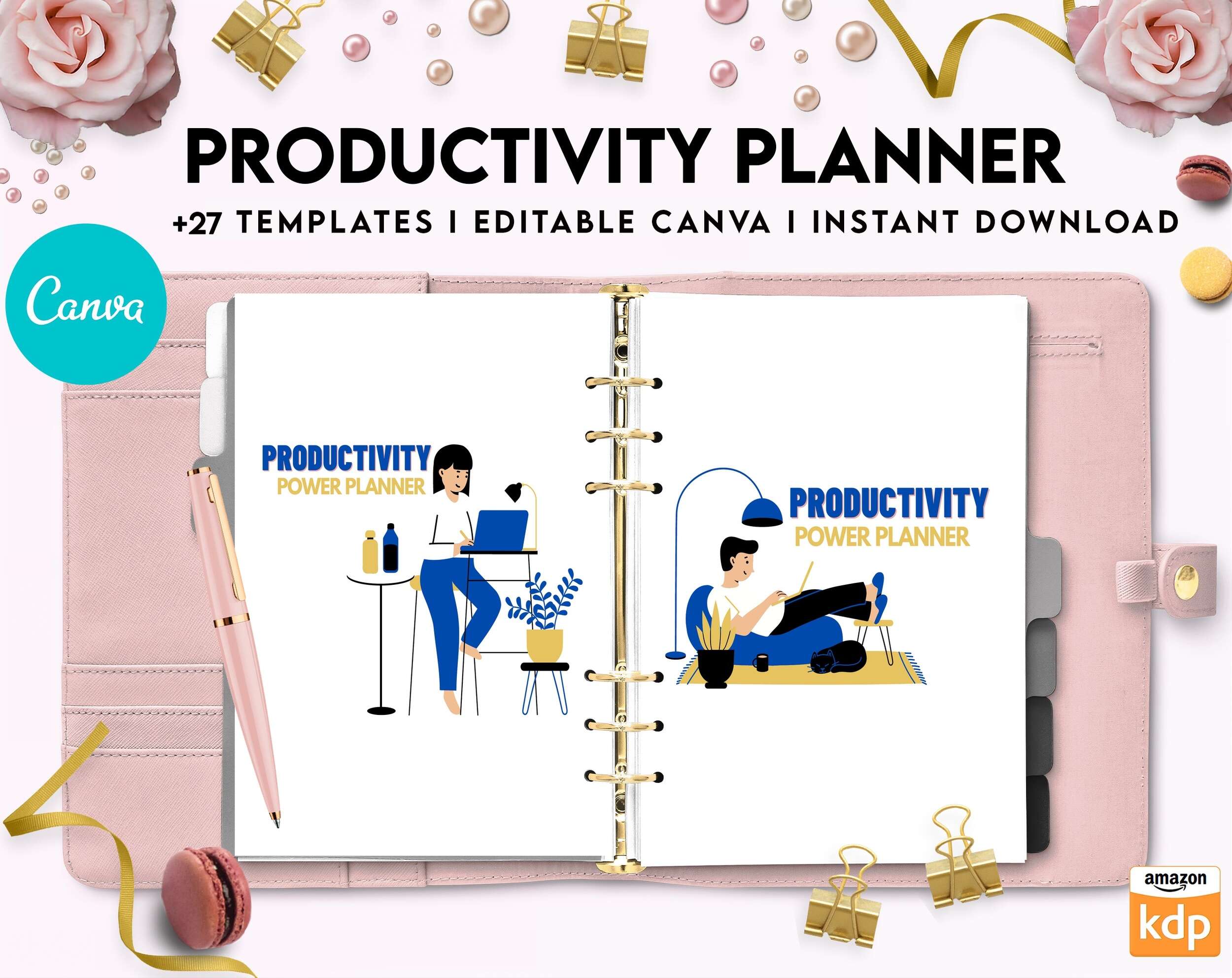 Discover our awesome PRODUCTIVITY PLANNER Editable Canva Template for KDP interior. Size 8.5 x 11 inches. Clean, nice and modern design.