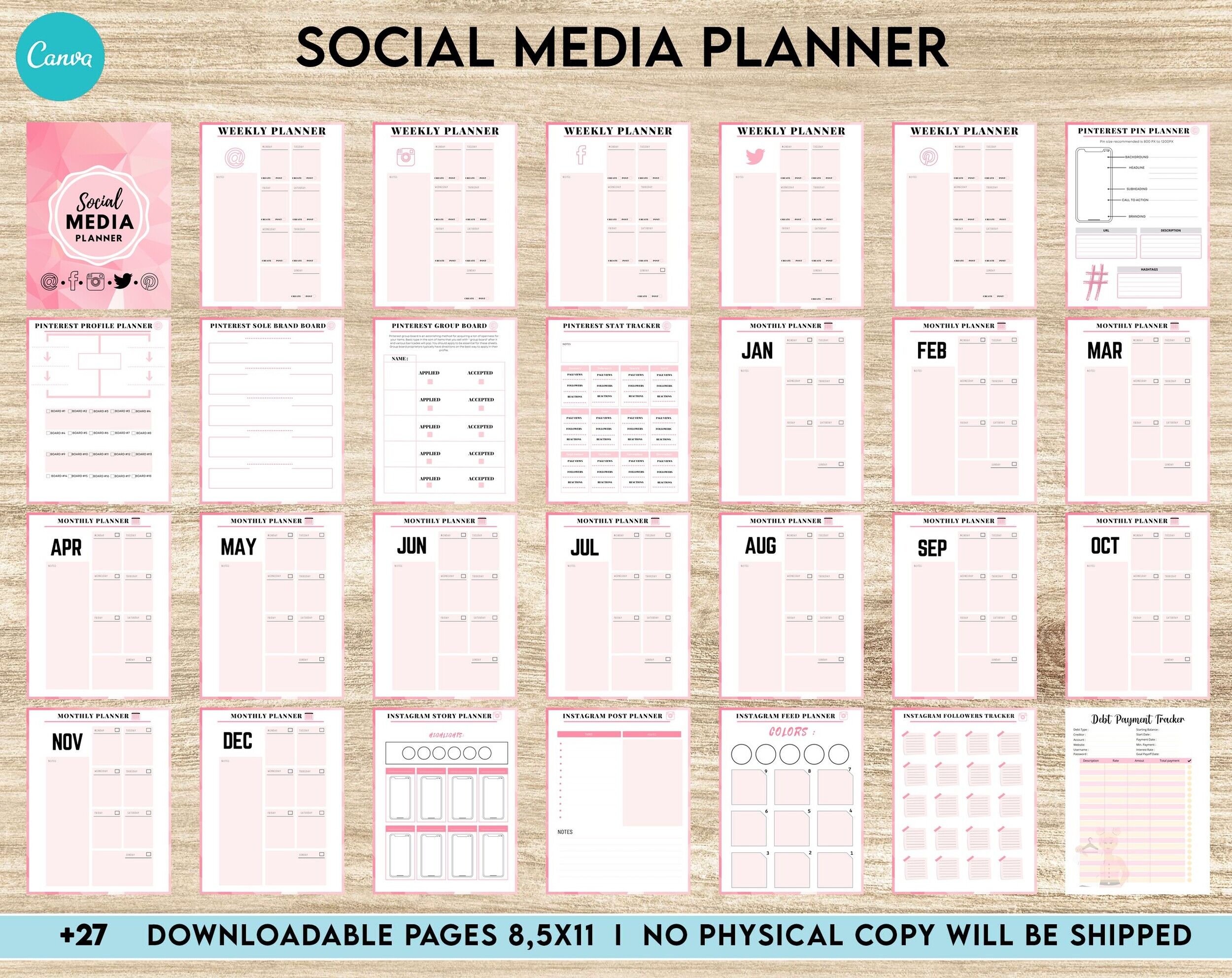Discover our awesome Social media planner Editable Canva Templates & Ready to Print.