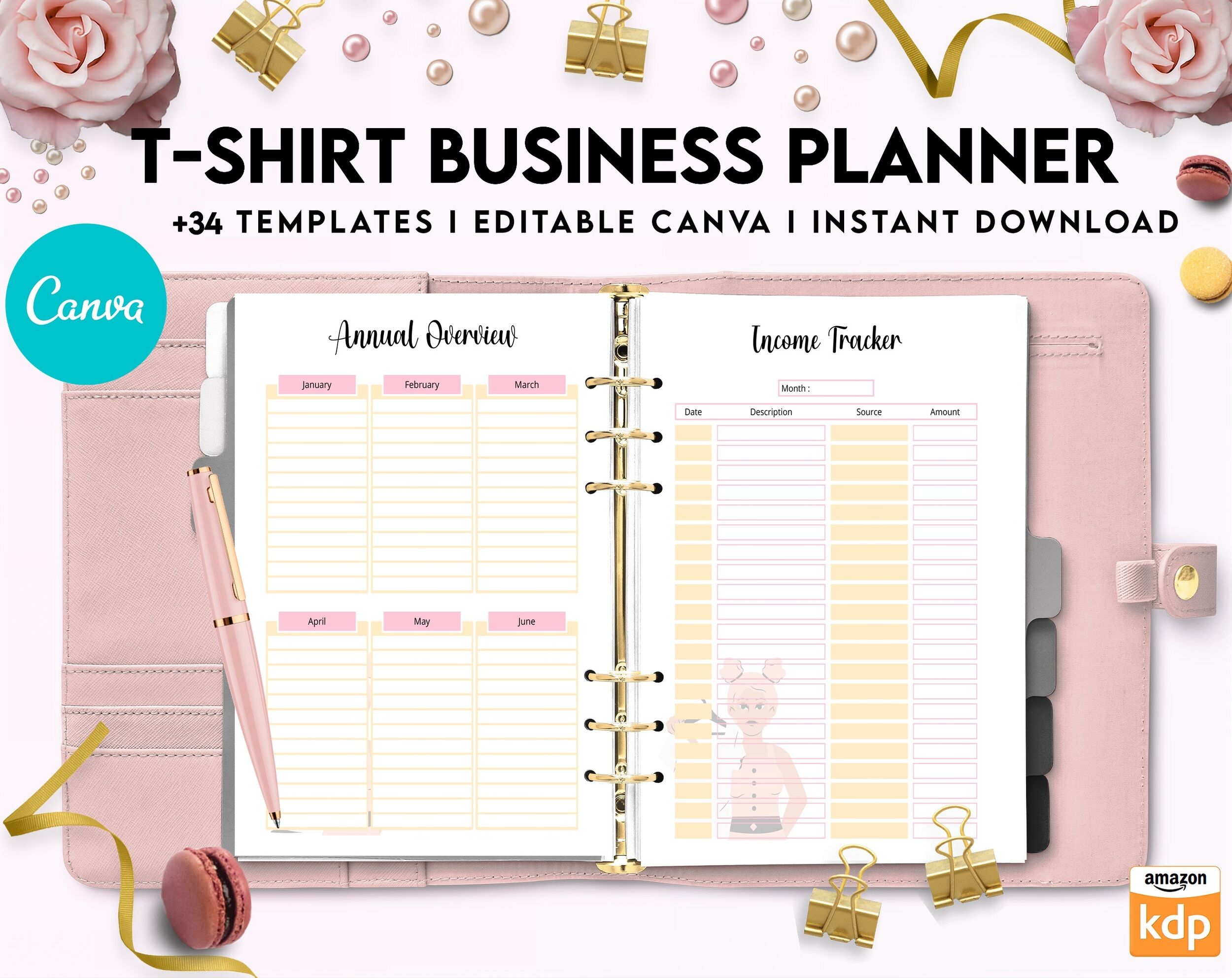 Discover our awesome T-shirt Business Planner Editable Canva Templates & Ready to Print.