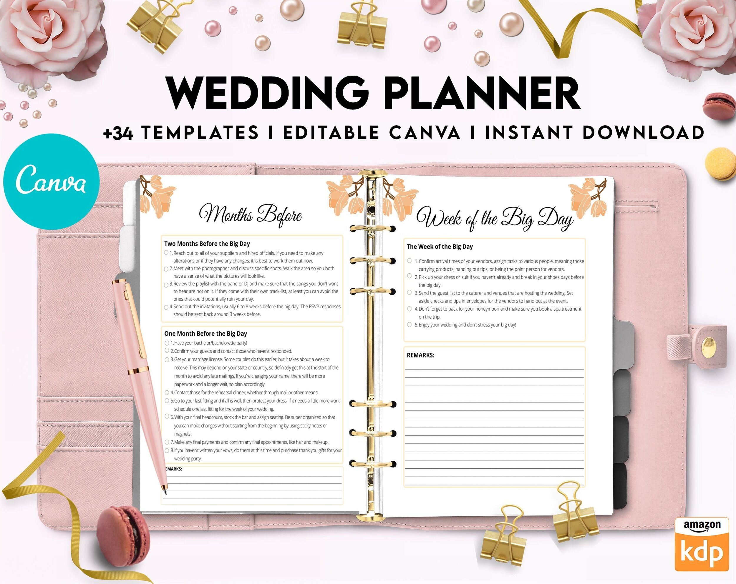 Discover our awesome Wedding planner Editable Canva Templates & Ready to Print.